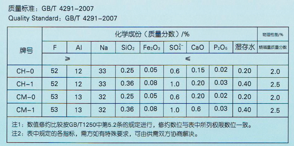 4) 用途:主要用于電解鋁的助熔劑,農作物的殺蟲劑,搪瓷釉藥的助熔劑,樹脂、橡膠的耐磨填充劑,鐵合金沸騰鋼生產的電解液及砂輪的配料等。